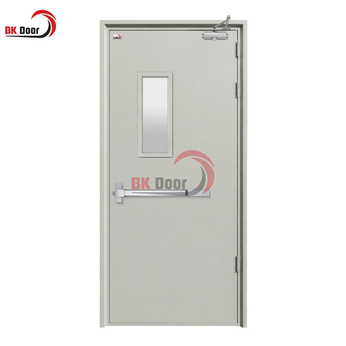 Cửa thép chống cháy 1 cánh ô kính BKD1-007 là phiên bản nâng cấp với thiết kế tích hợp ô kính chống cháy giúp quan sát linh hoạt mà vẫn đảm bảo an toàn. Sản phẩm kết hợp giữa kết cấu thép tấm chắc chắn và kính chịu nhiệt chuyên dụng, vừa tăng khả năng kiểm soát không gian, vừa duy trì hiệu quả chống cháy. chống khói tối ưu.